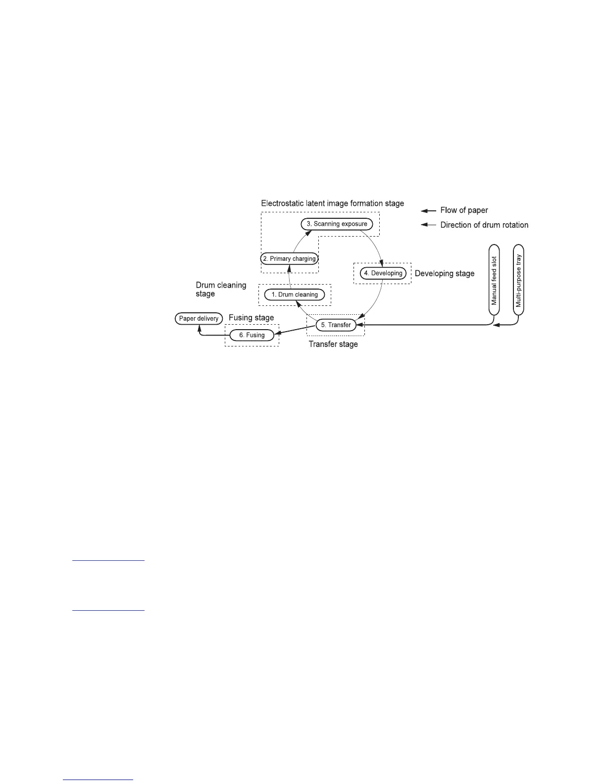 formed on the drum surface and then transferred to paper.