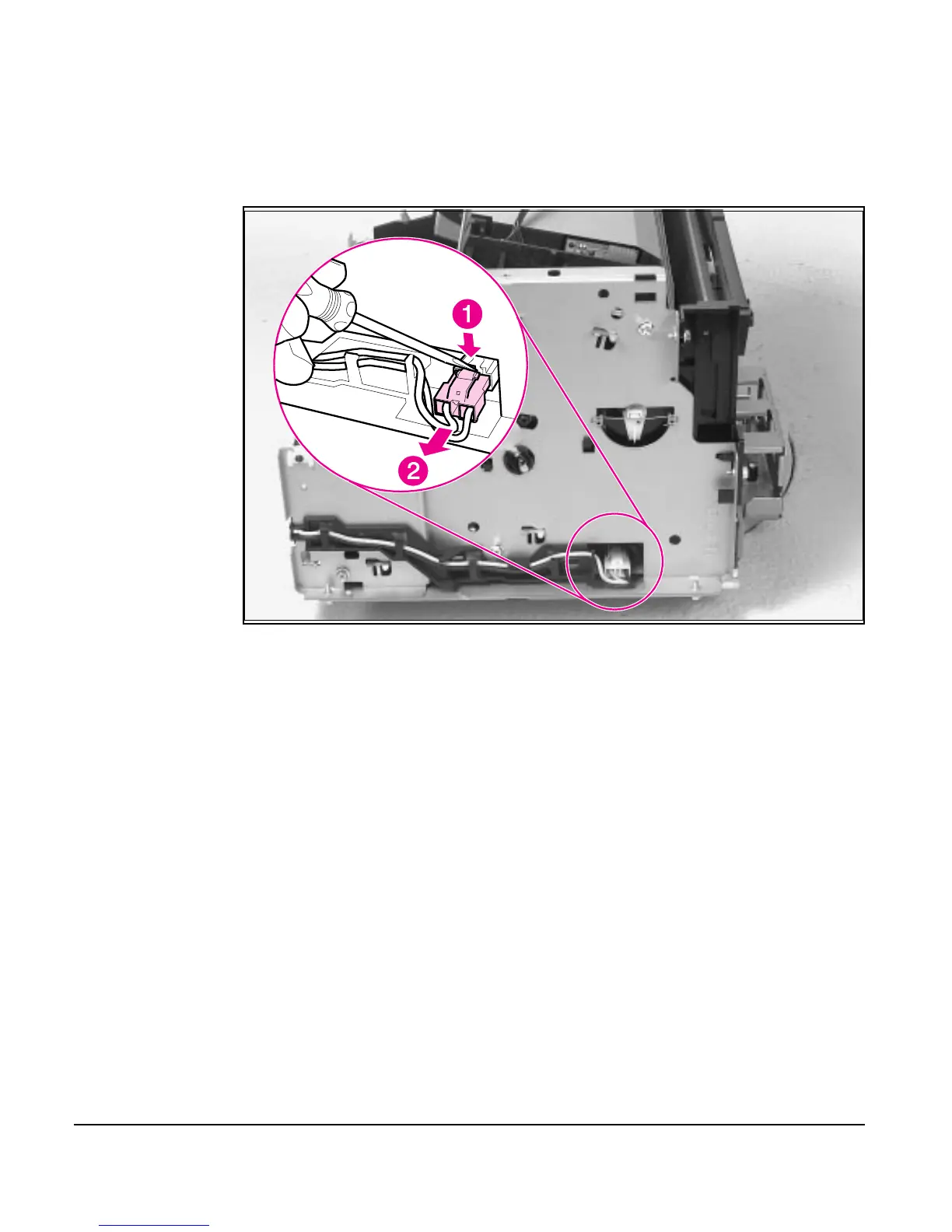 located on the DC Controller. Press down on the connector release with a small,