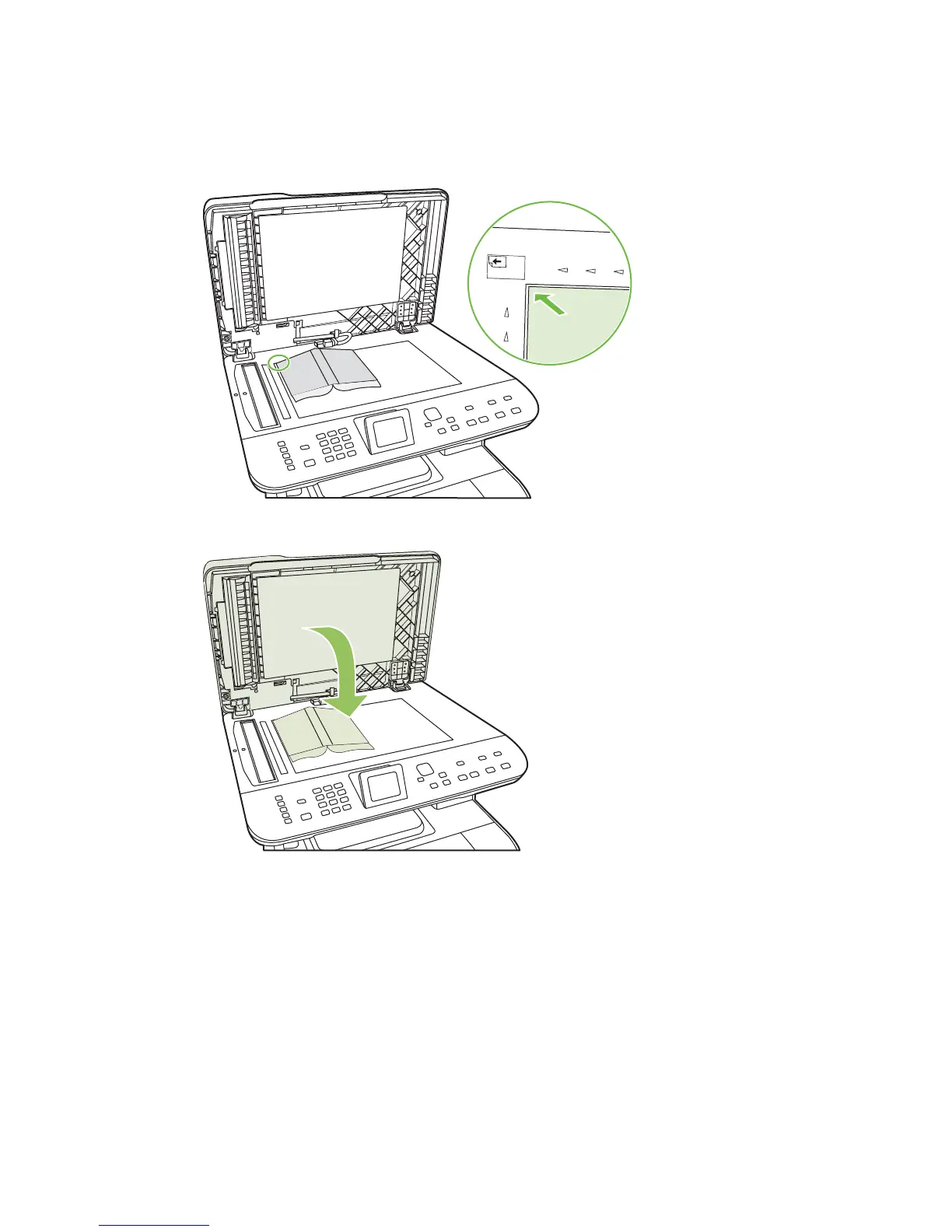 1. Lift the lid and place the book on the flatbed scanner with the page that you want to copy at the