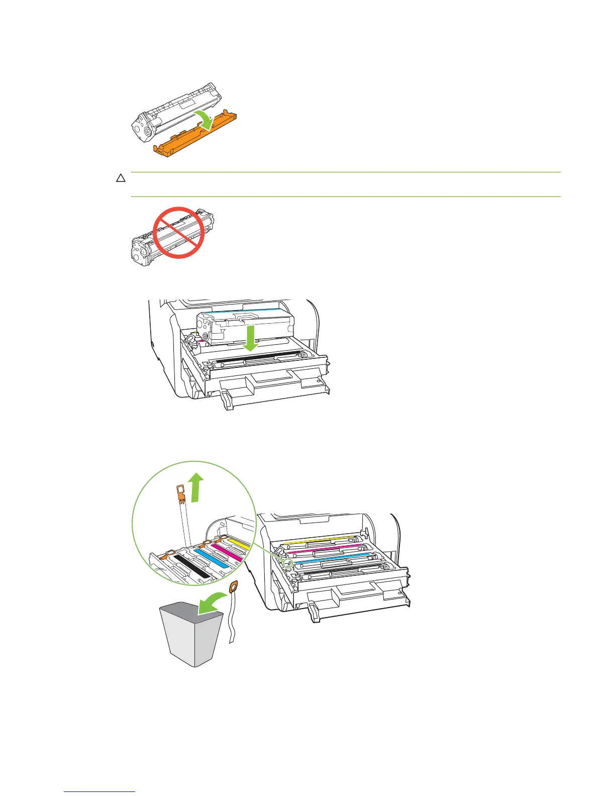 CAUTION: Do not touch the imaging drum on the bottom of the print cartridge. Fingerprints on