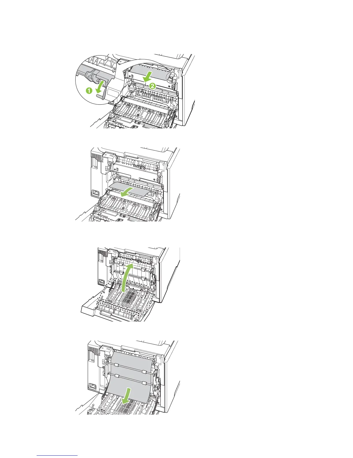 3. If necessary, remove any visible paper from bottom side of the duplexing unit.
