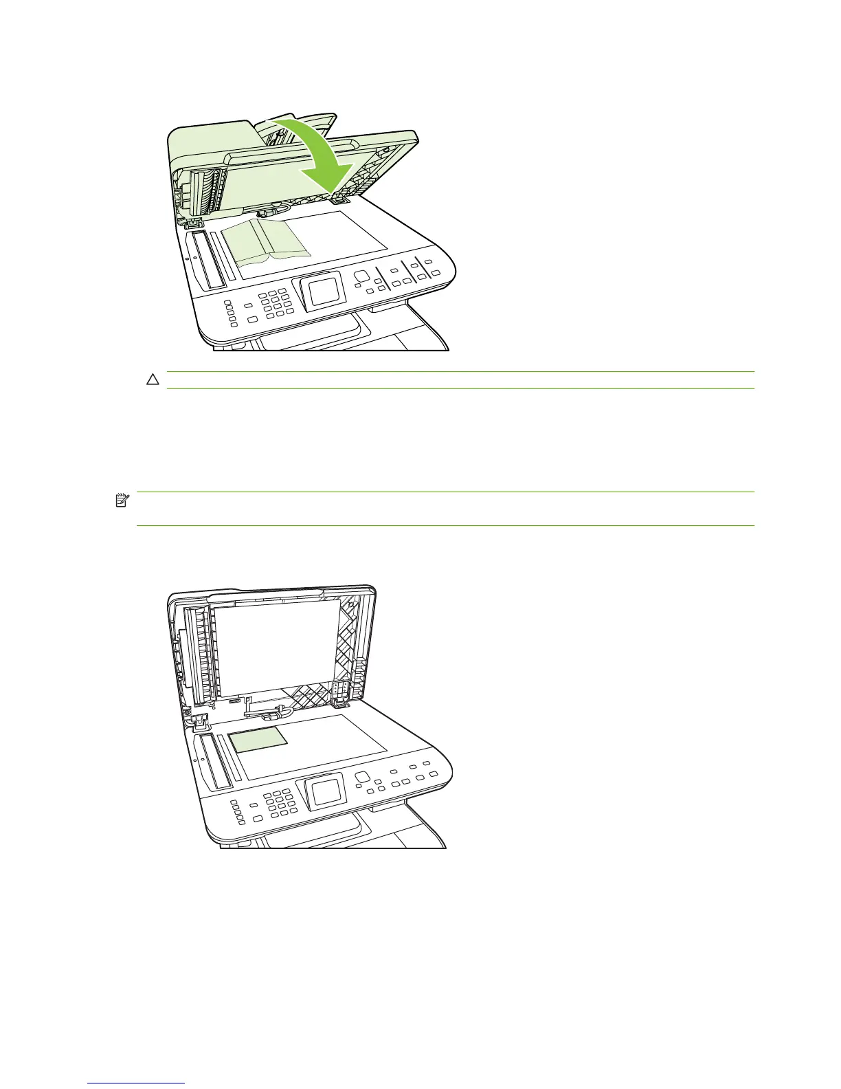 CAUTION: Pressing on the flatbed cover with too much force can break the lid hinges.