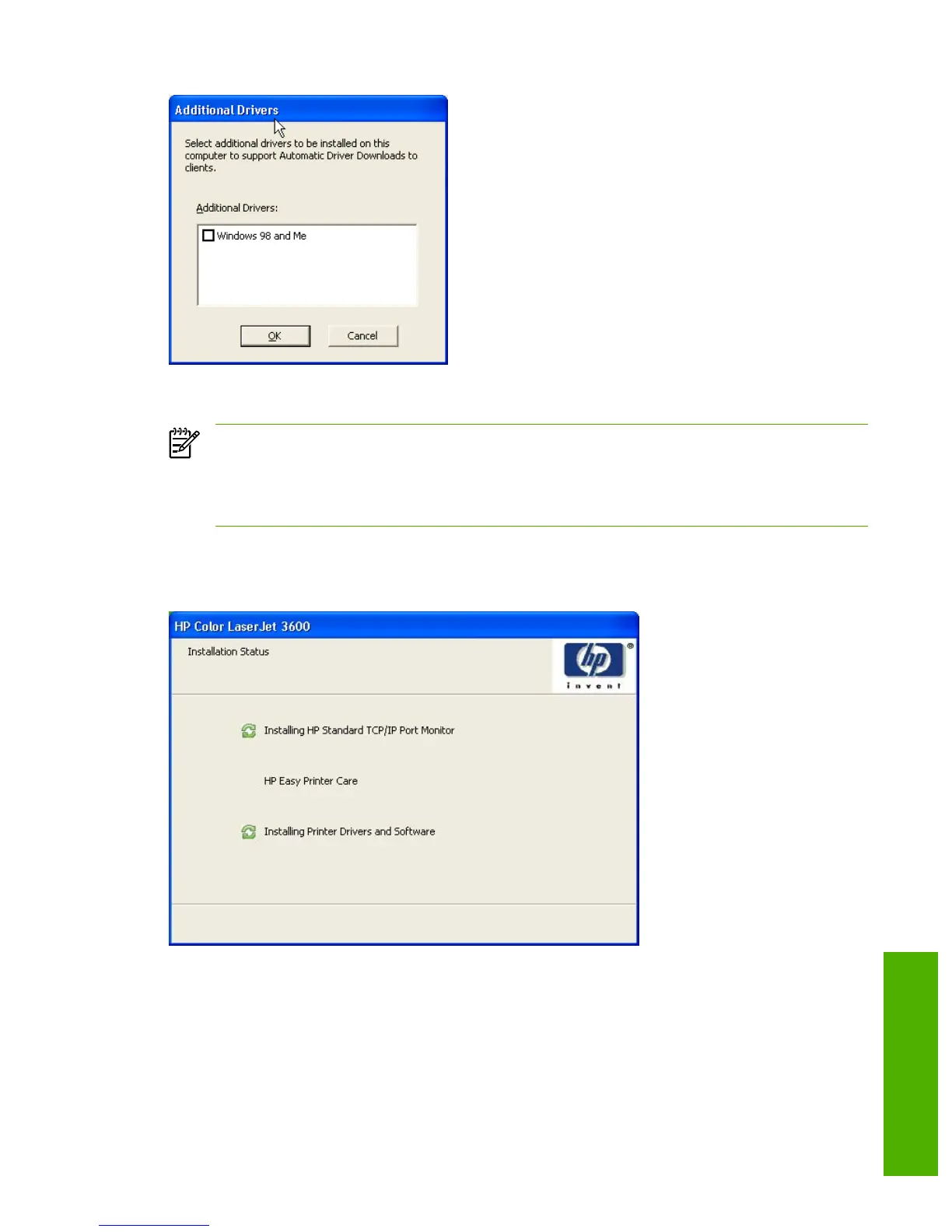 The Additional Drivers dialog box does not appear if your computer is running Windows 98 or