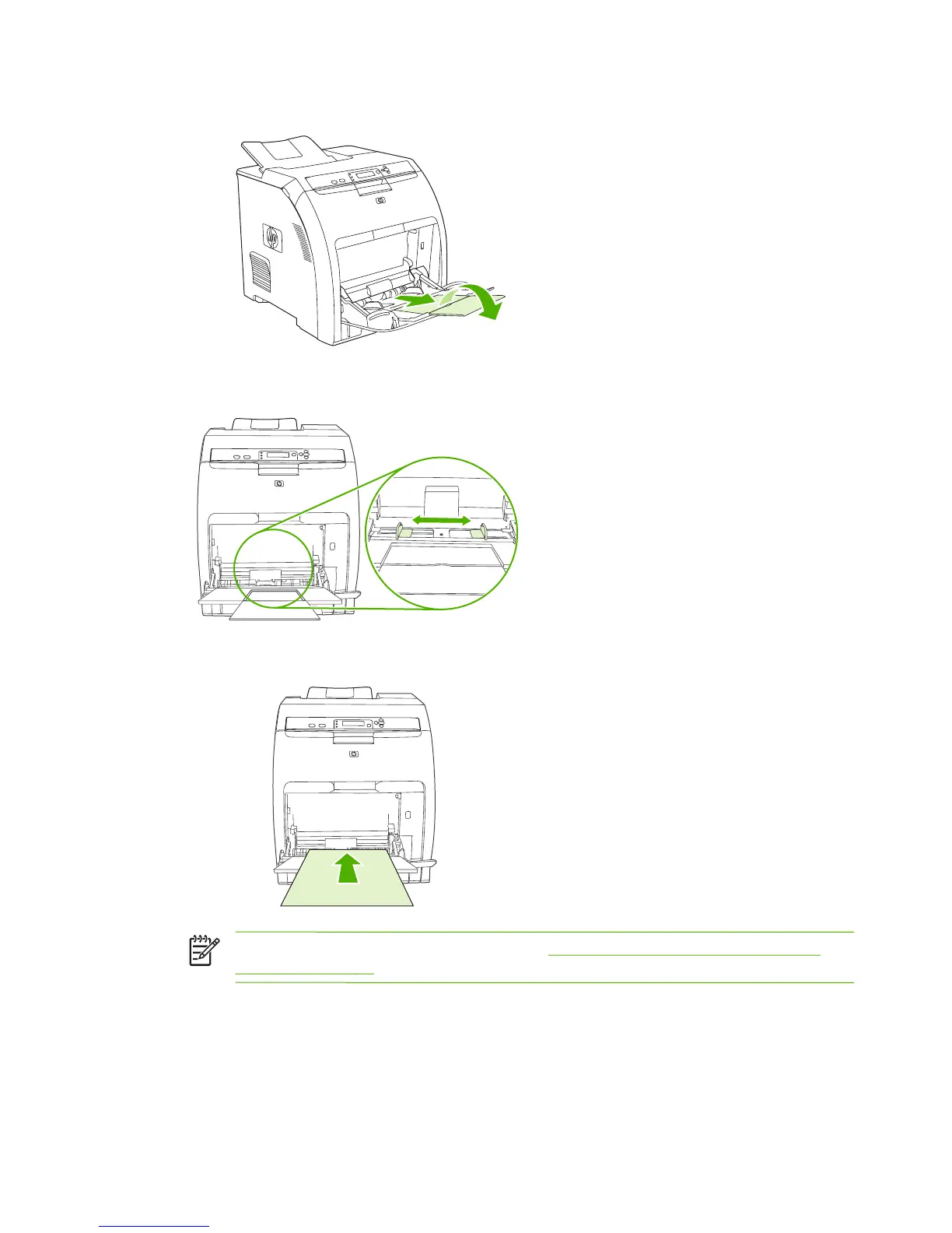 5. Place print media into the tray with the side to be printed down, and the top, short edge in first.