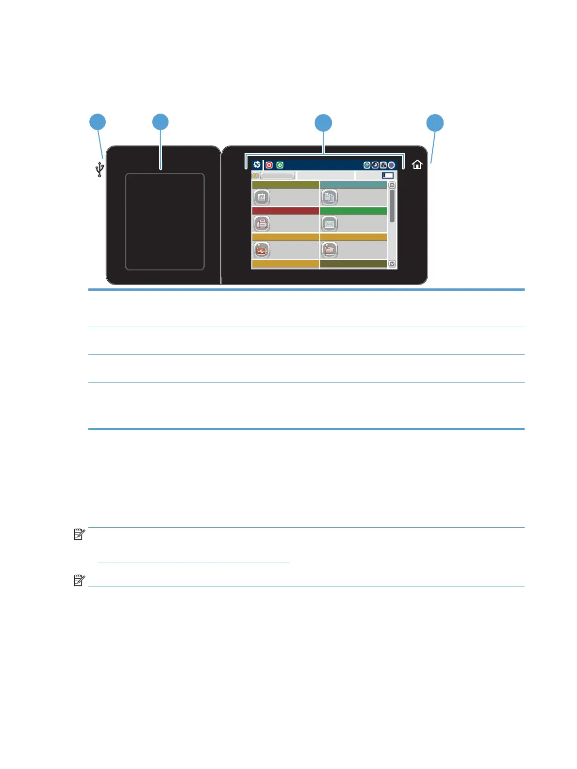 NOTE: The features that appear on the Home screen can vary, depending on the product conguration.