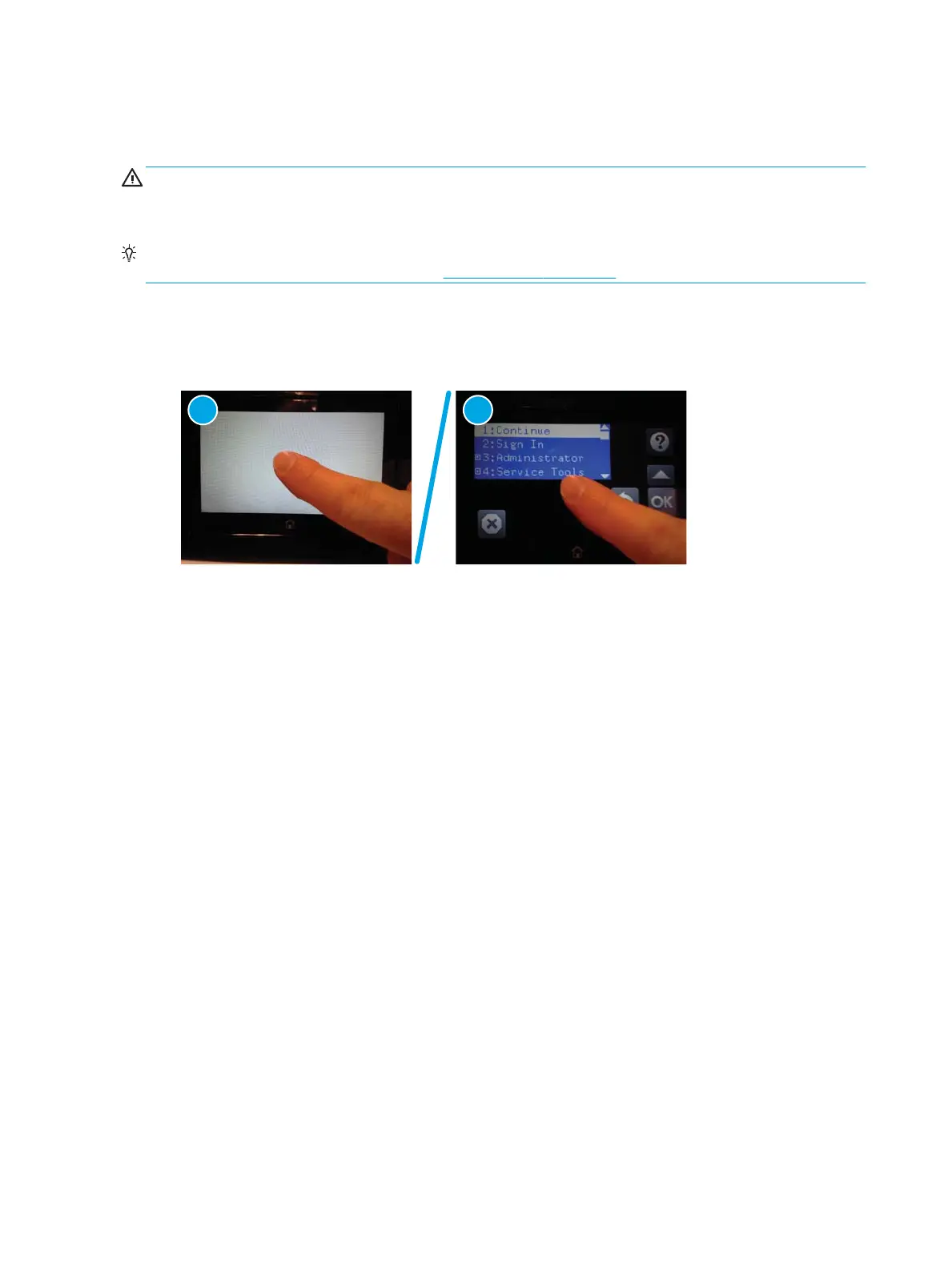 1. Touch in the middle of the control-panel display when you see the 1/8 under the HP logo.