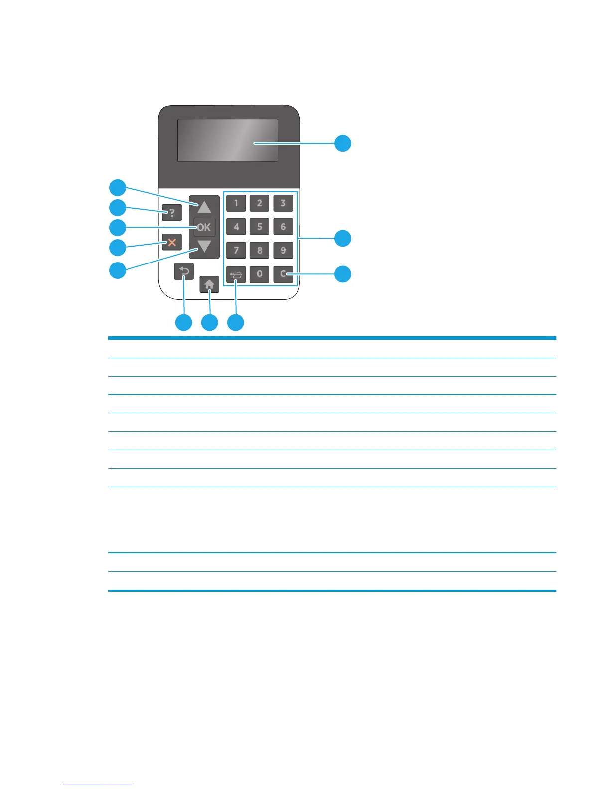 1 Control-panel display Shows status information, menus, help information, and error messages