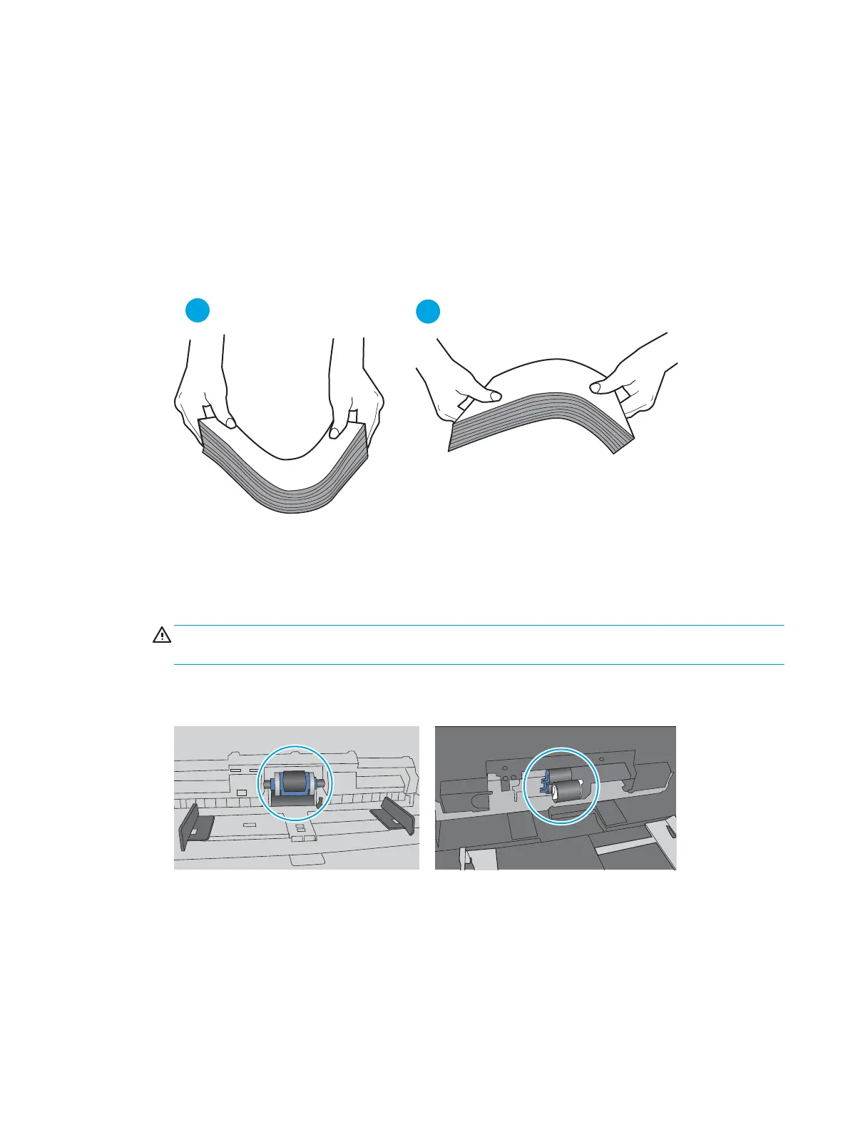 1. Remove the stack of paper from the tray and ex it, rotate it 180 degrees, and ip it over. Do not fan the