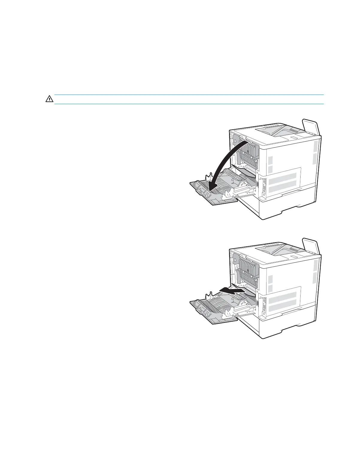 CAUTION: The fuser is hot while the printer is in use. Wait for the fuser to cool before clearing jams.