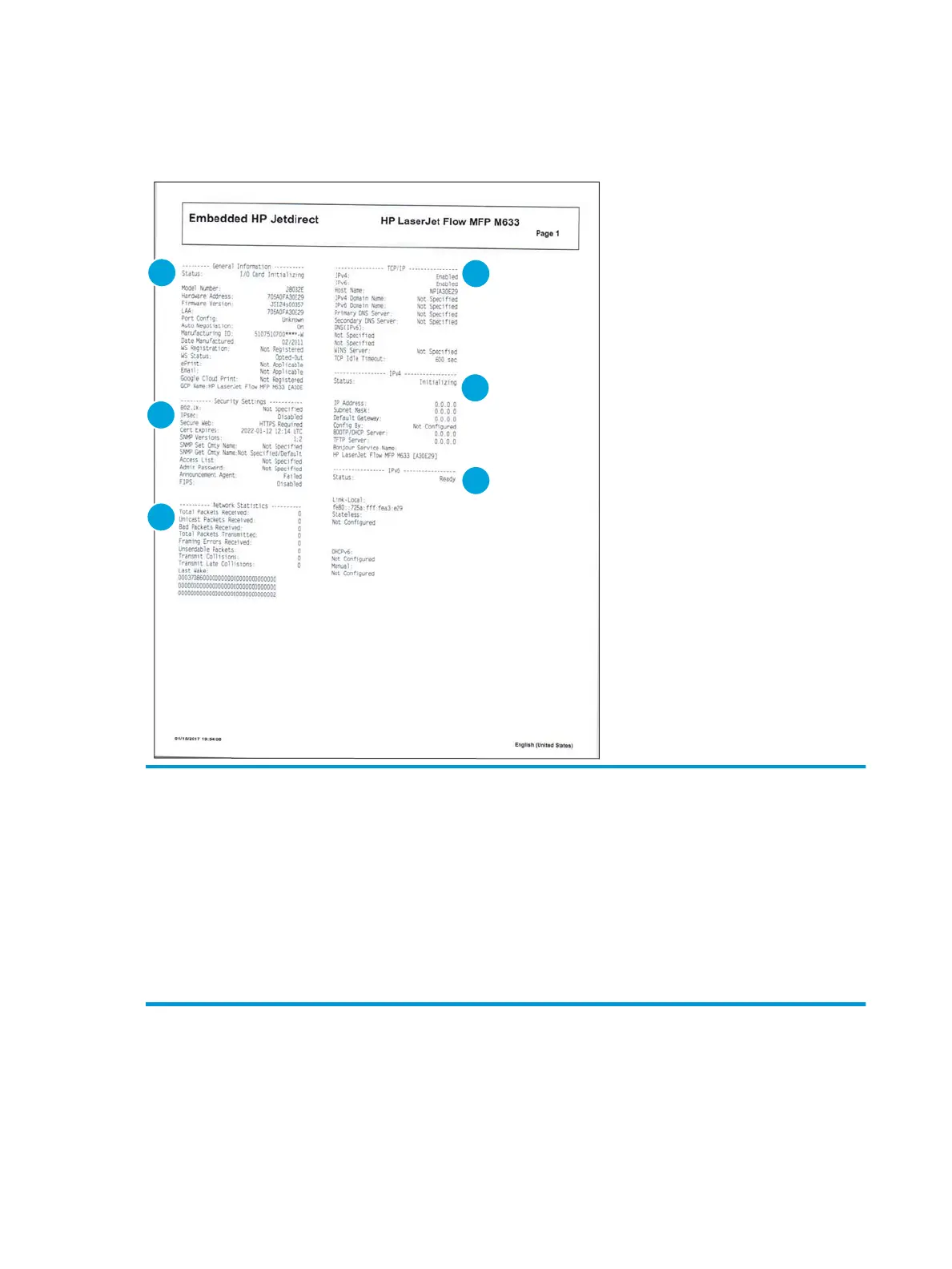 1 General Information indicates the printer status, model number, hardware rmware version, port select, port conguration,