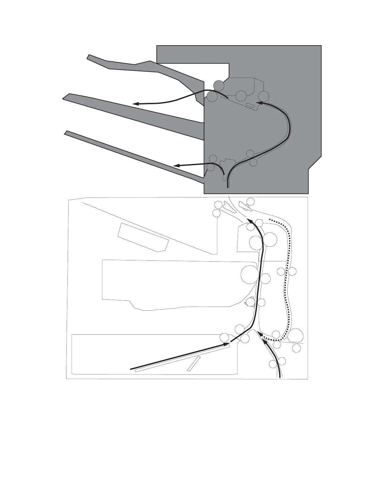 Figure 1-39 Paper path for the 2-bin SSMBM