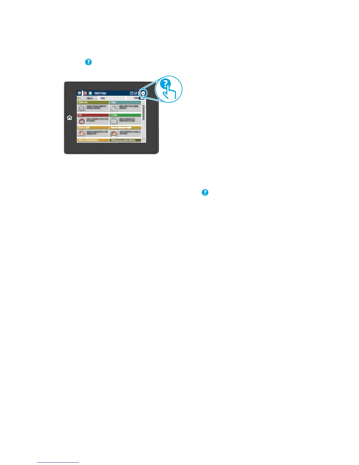 The printer has a built-in Help system that explains how to use each screen. To open the Help system, touch