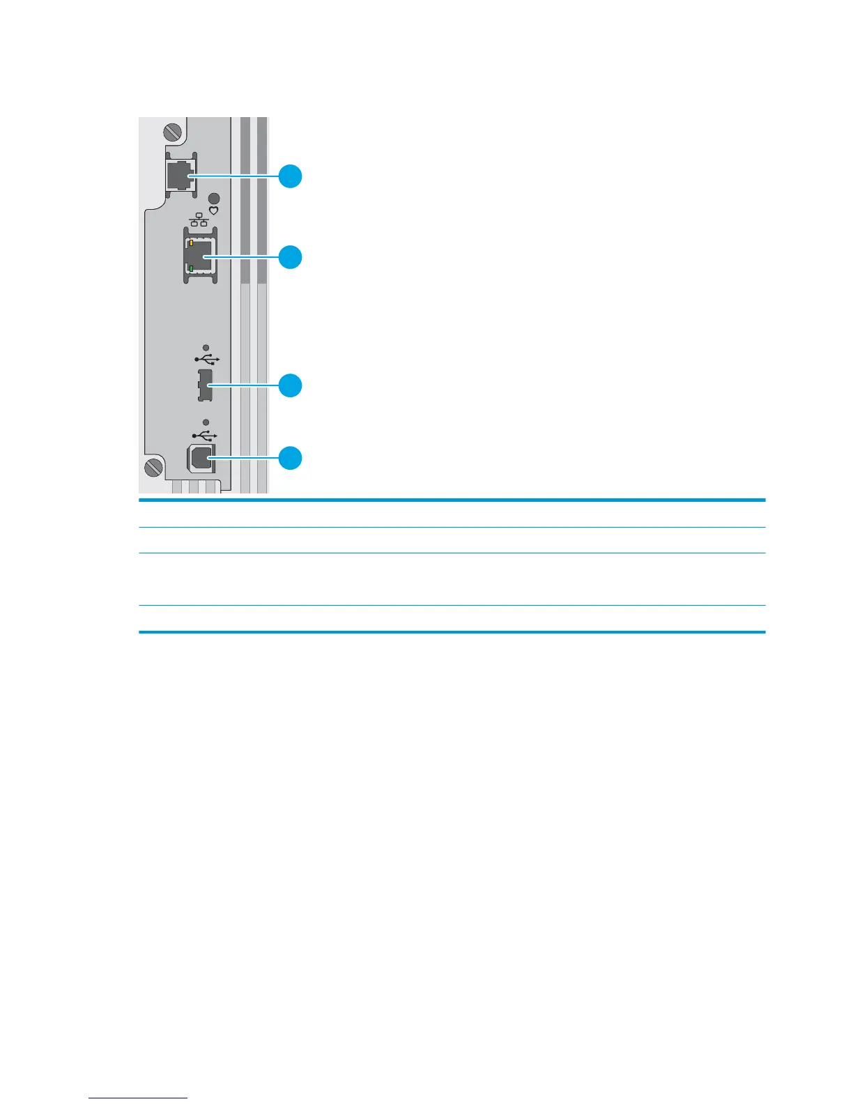 1 Fax port (f, c, and z models only. The port is covered for the dn model.)