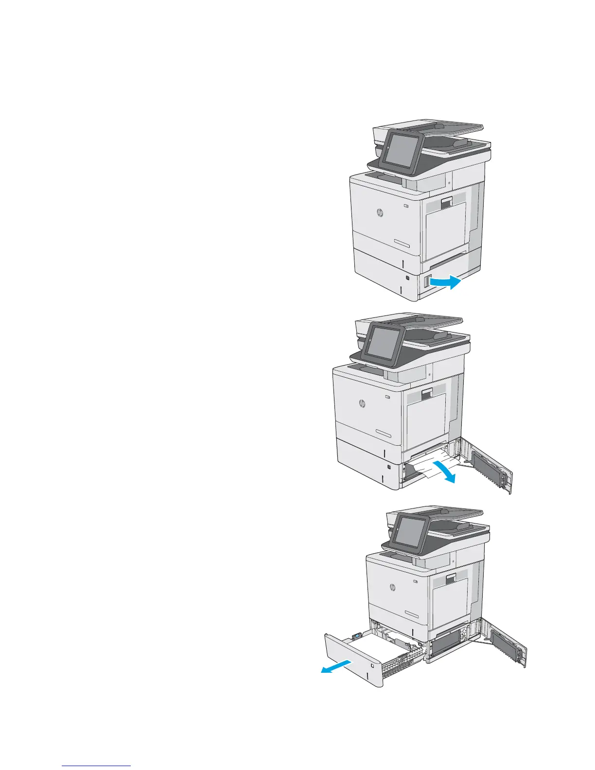 Use the following procedure to check for paper in all possible jam locations related to the optional 550-sheet