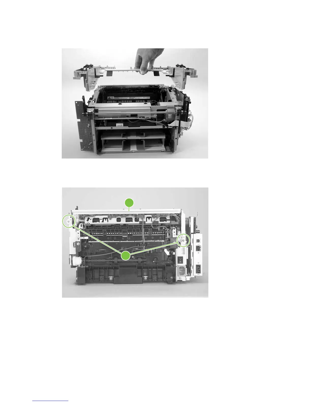 6. If you are removing the scanner support frame to gain access to the fuser, remove two screws