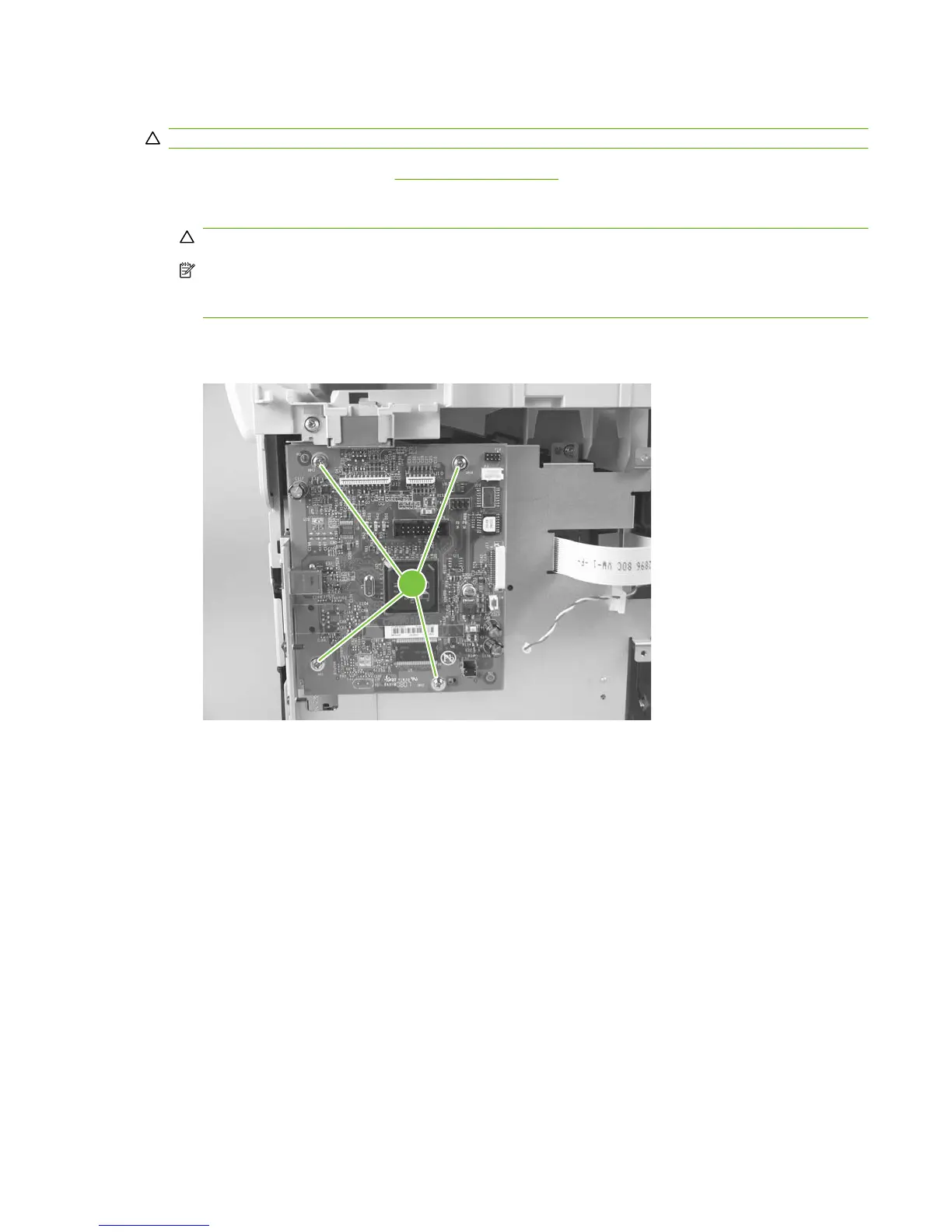 3. Remove four screws from the formatter PCA (callout 1). Remove the formatter.