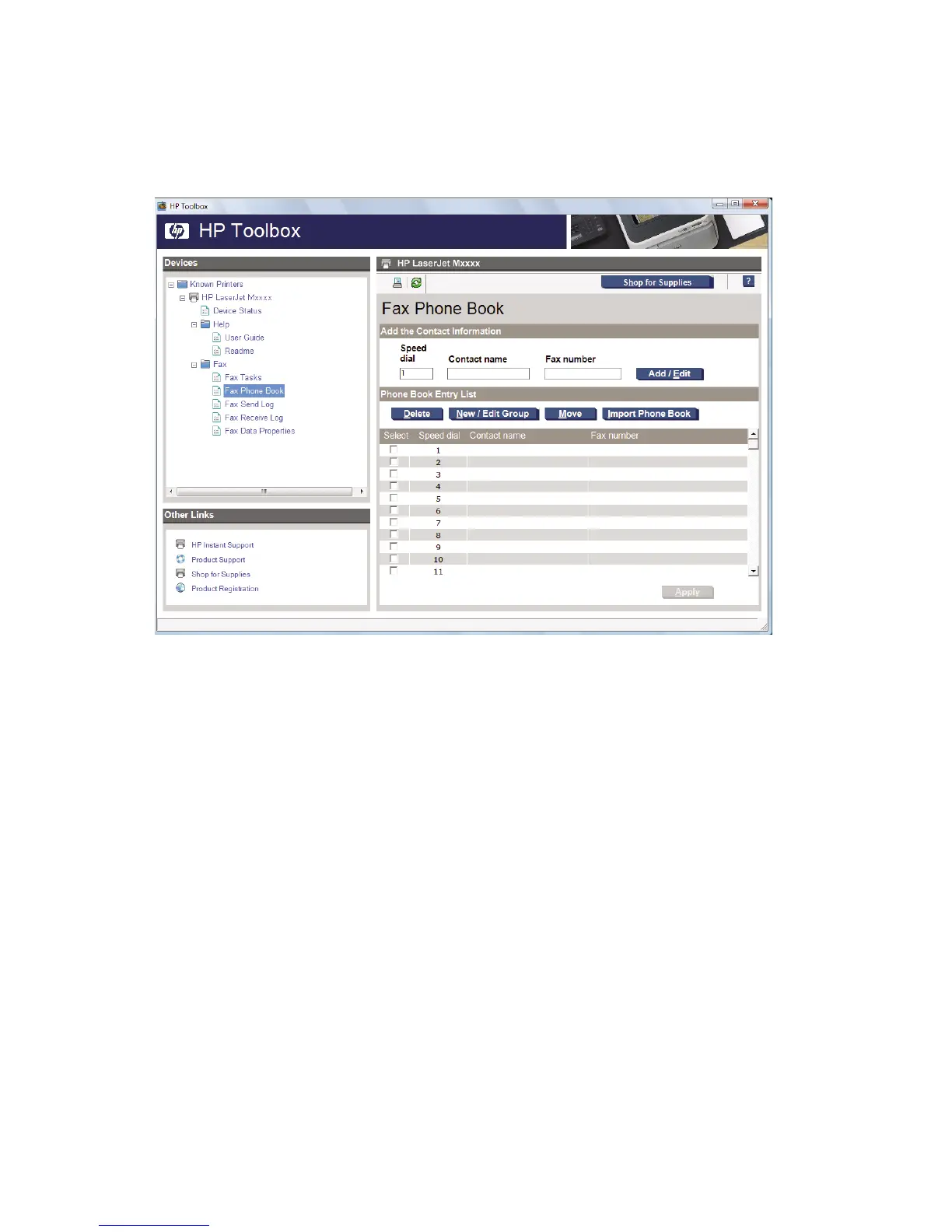Figure 2-5 HP Toolbox — Fax Phone Book screen