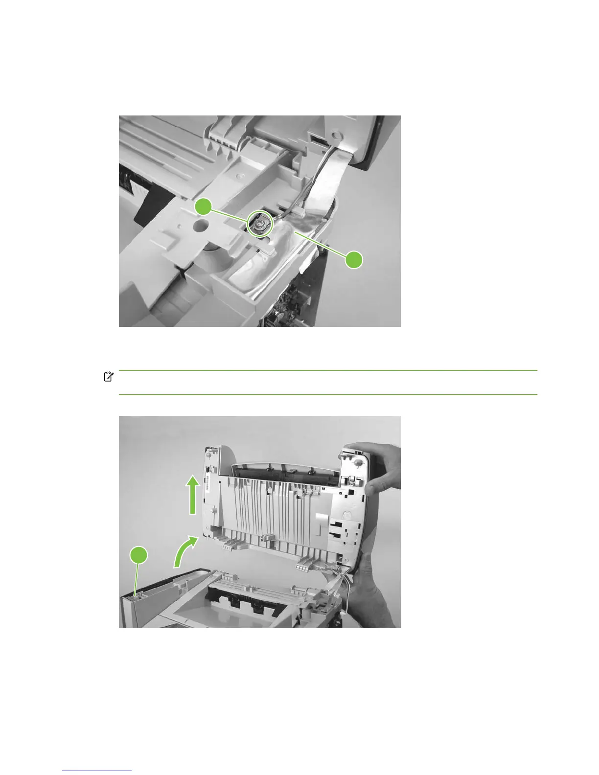 14. Rotate the scanner assembly toward the rear of the product until the rear hinges clear the chassis