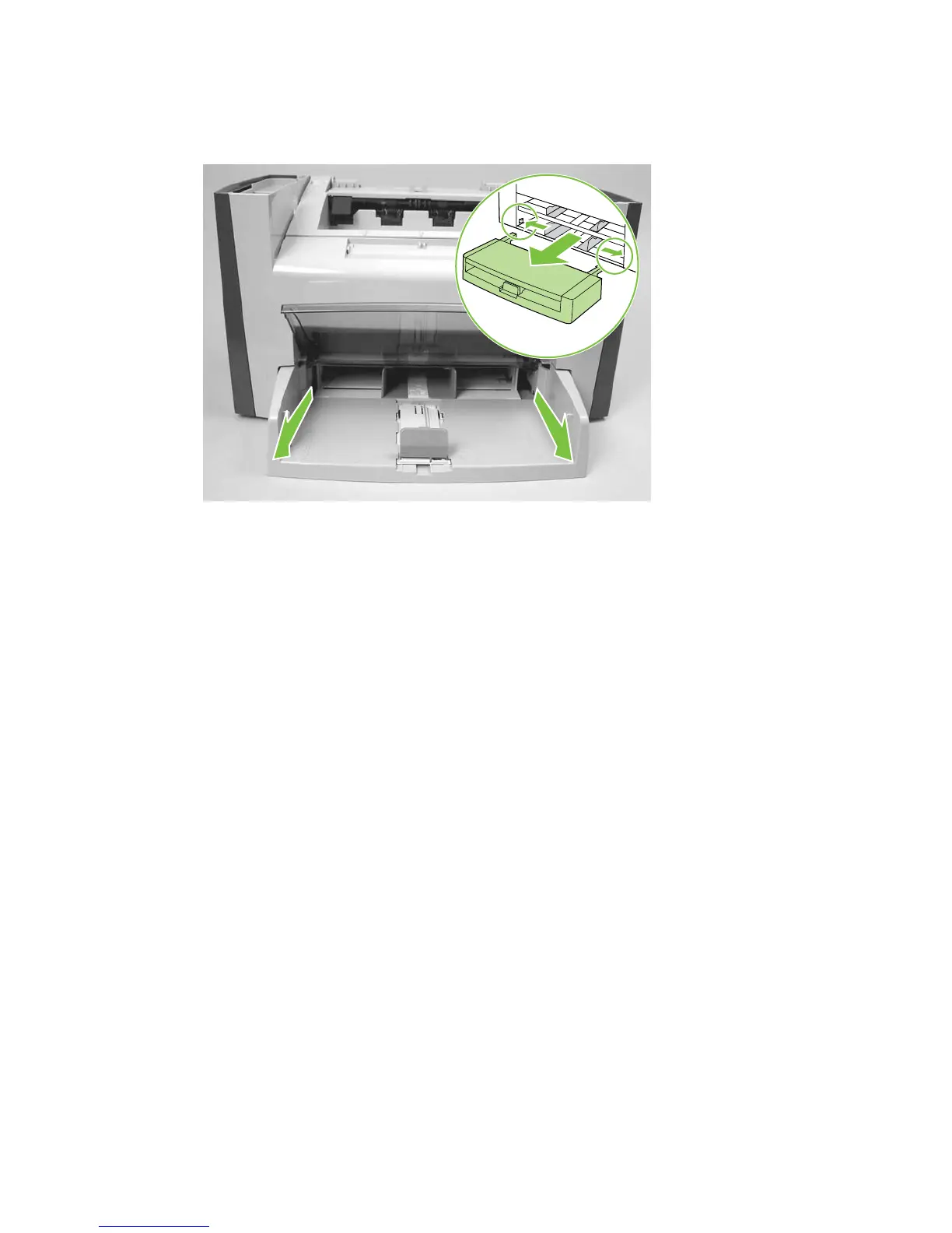 3. Depress the pickup-tray locking tabs to release the media input tray, and then pull it out and away