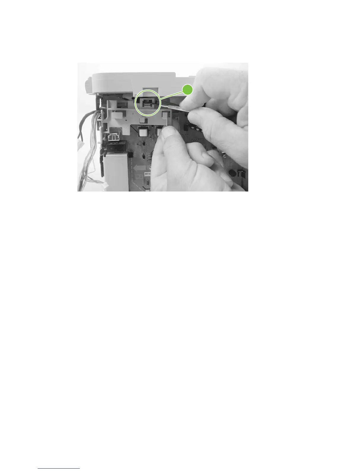 6. Unclip one clip (callout 7) and dislodge, but do not remove, the wire guide, and then remove the