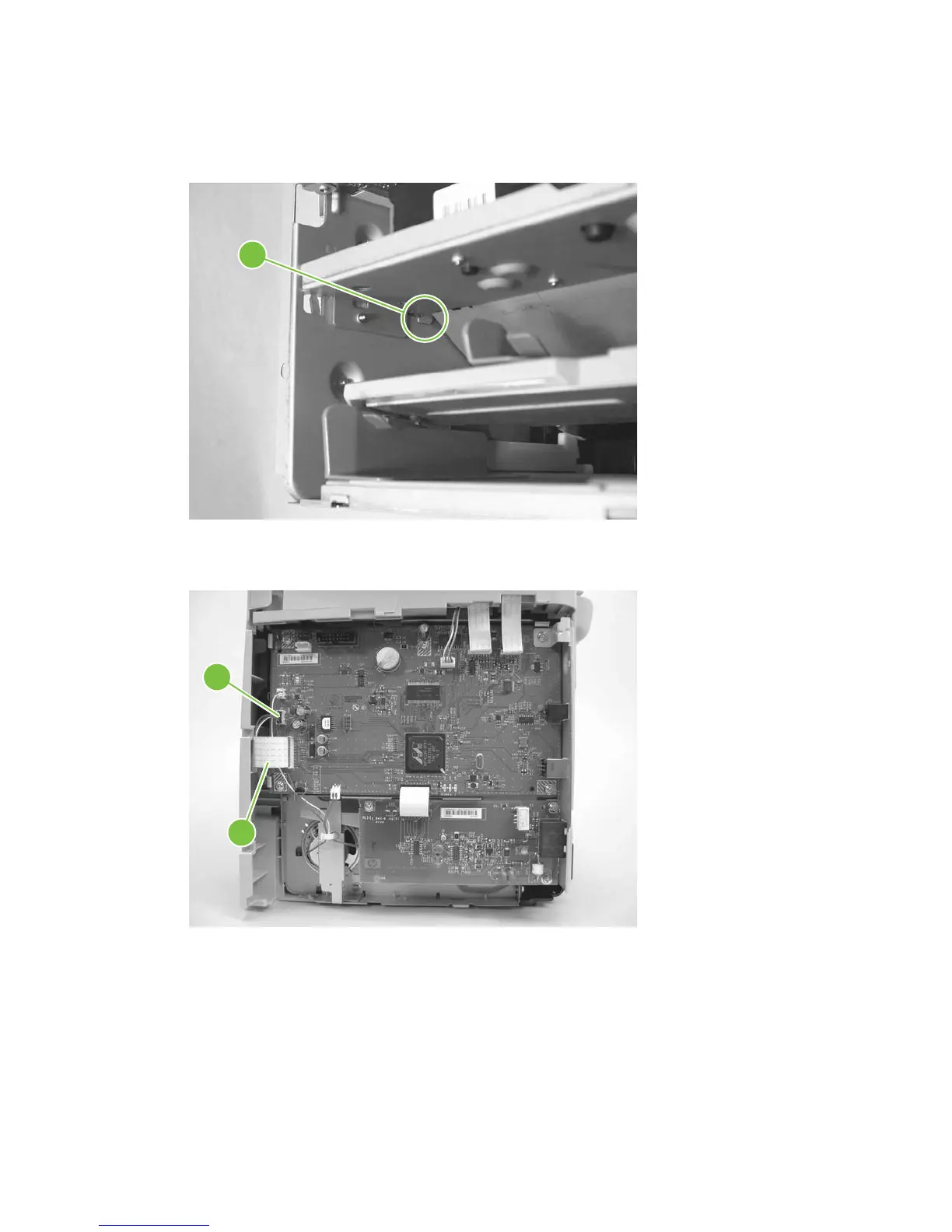4. Disconnect one FFC (callout 3) and one wire-harness connector (callout 4) from the formatter.
