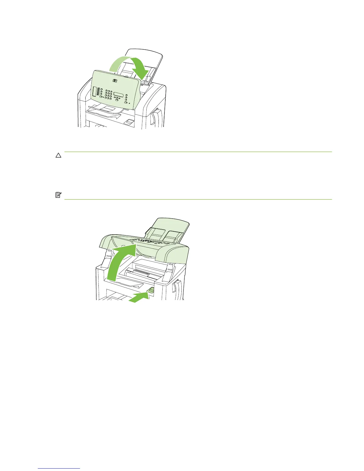 CAUTION: Do not use sharp objects, such as tweezers or needle-nose pliers, to remove jams.