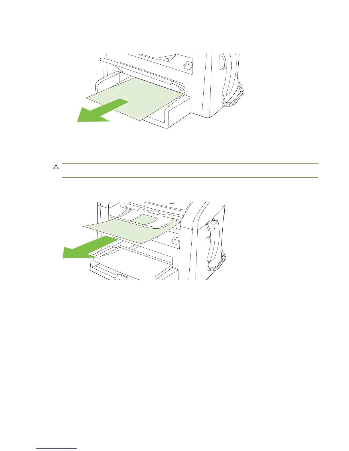 CAUTION: Do not use sharp objects, such as tweezers or needle-nose pliers, to remove jams.