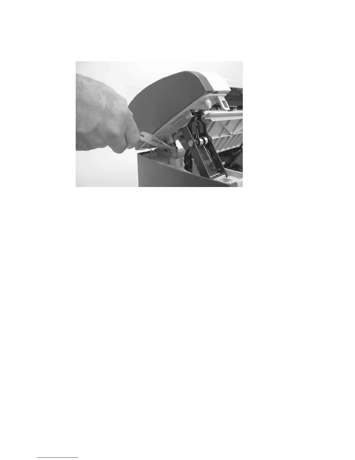 5. Use needle-nose pliers to remove the scanner support-frame spring from the left side of the
