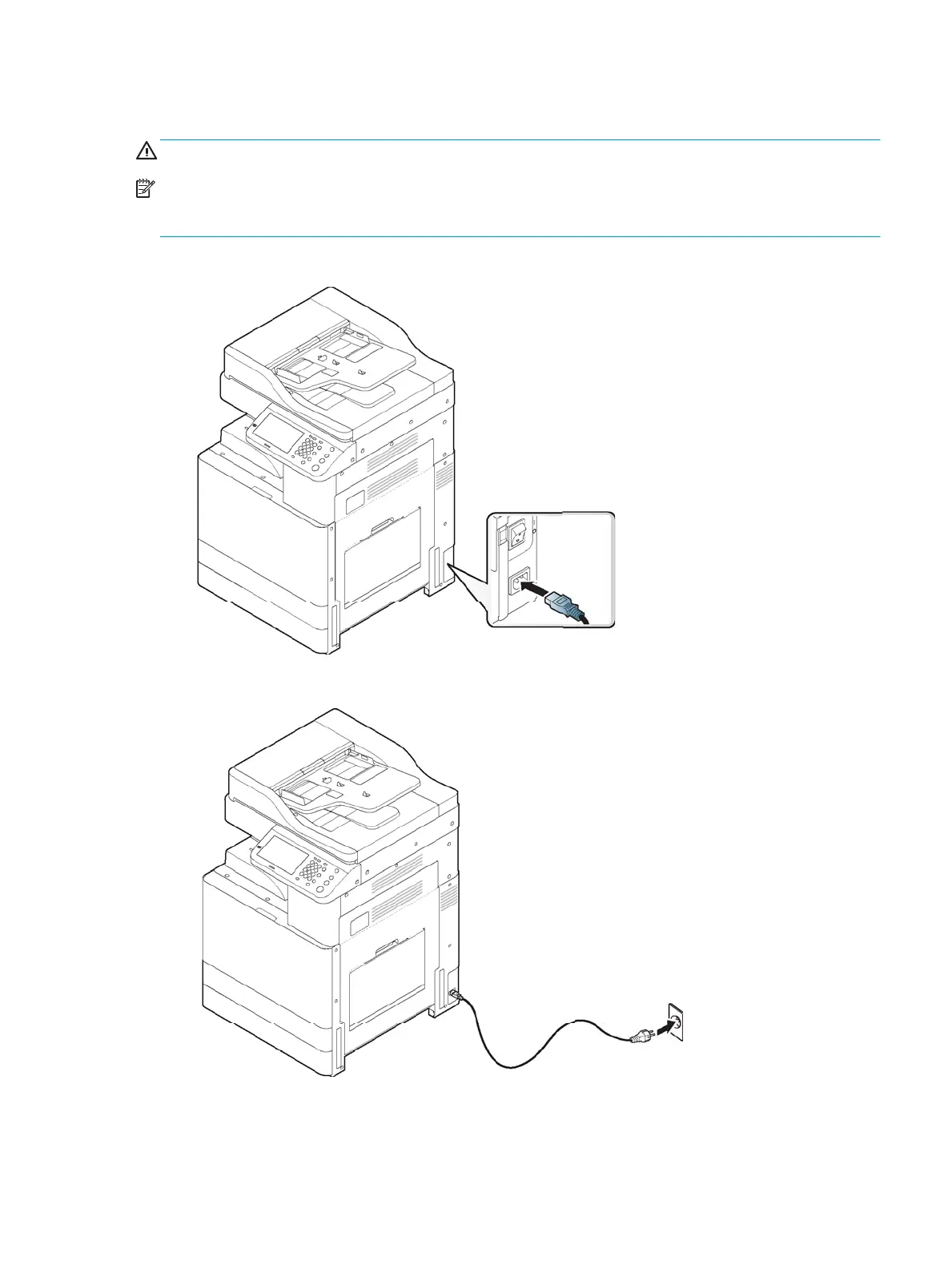 NOTE: Make sure that the power source is adequate for the printer voltage rating. The voltage rating is on the