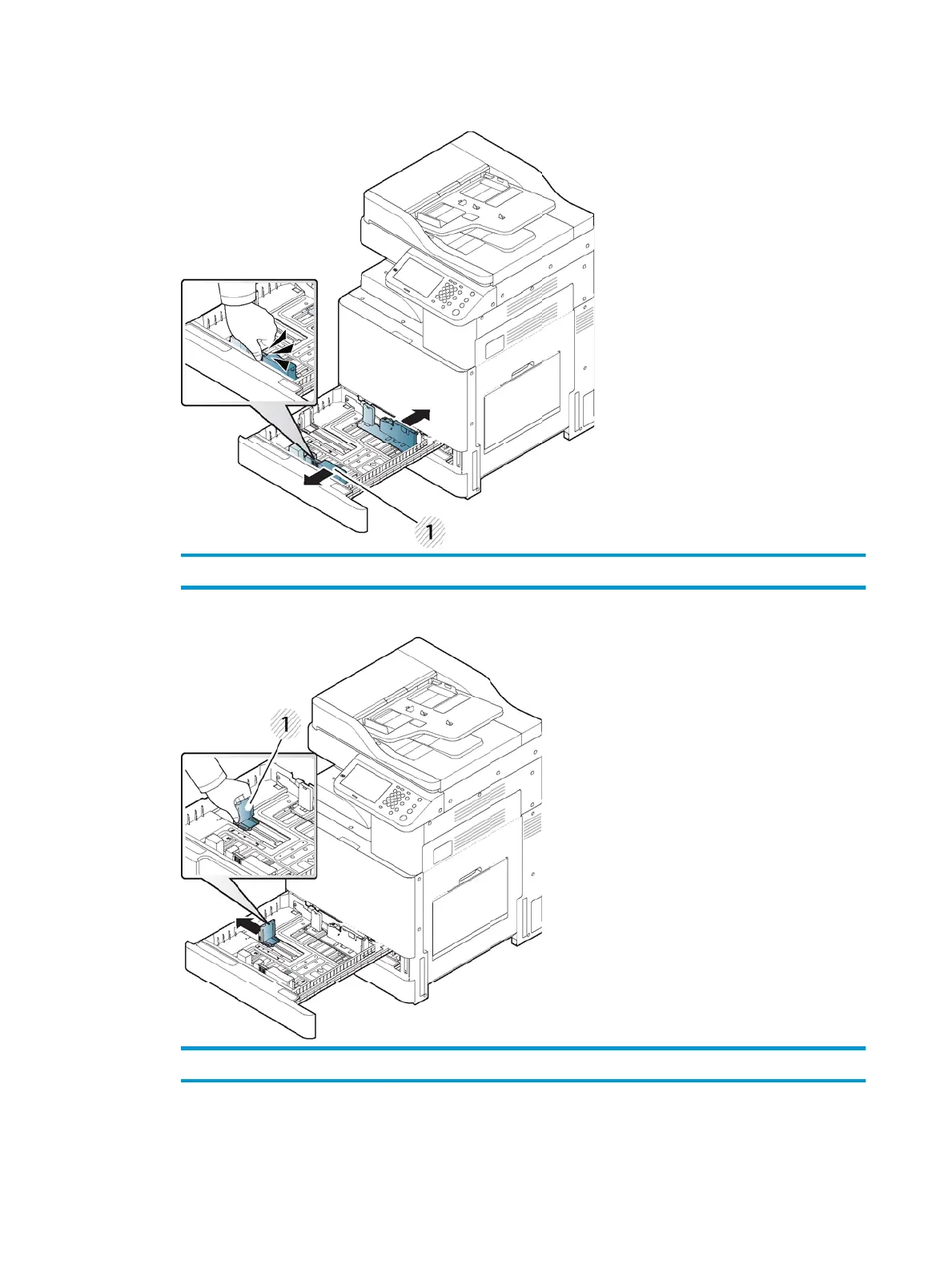 2. Squeeze the paper length guide, and pull it to the end of the tray.