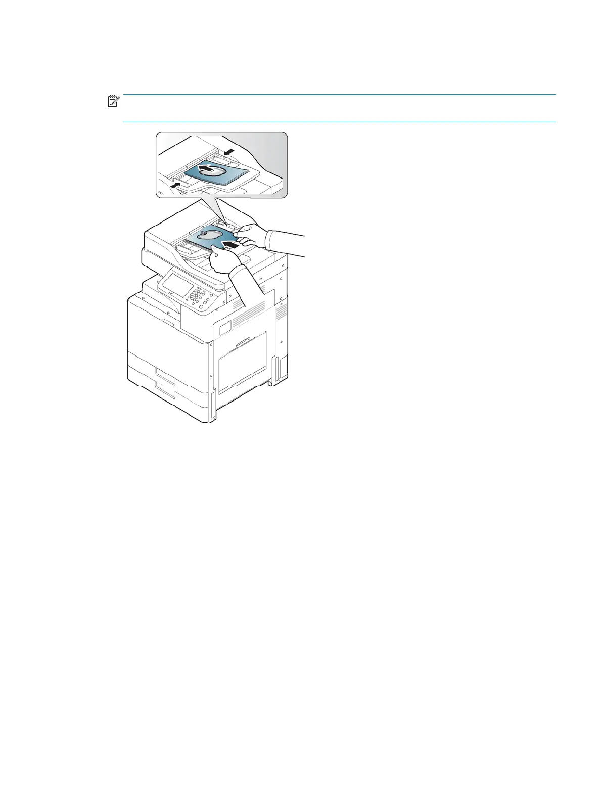 2. Place the dierent sized originals face up in the document feeder. Align and gently push them to the center