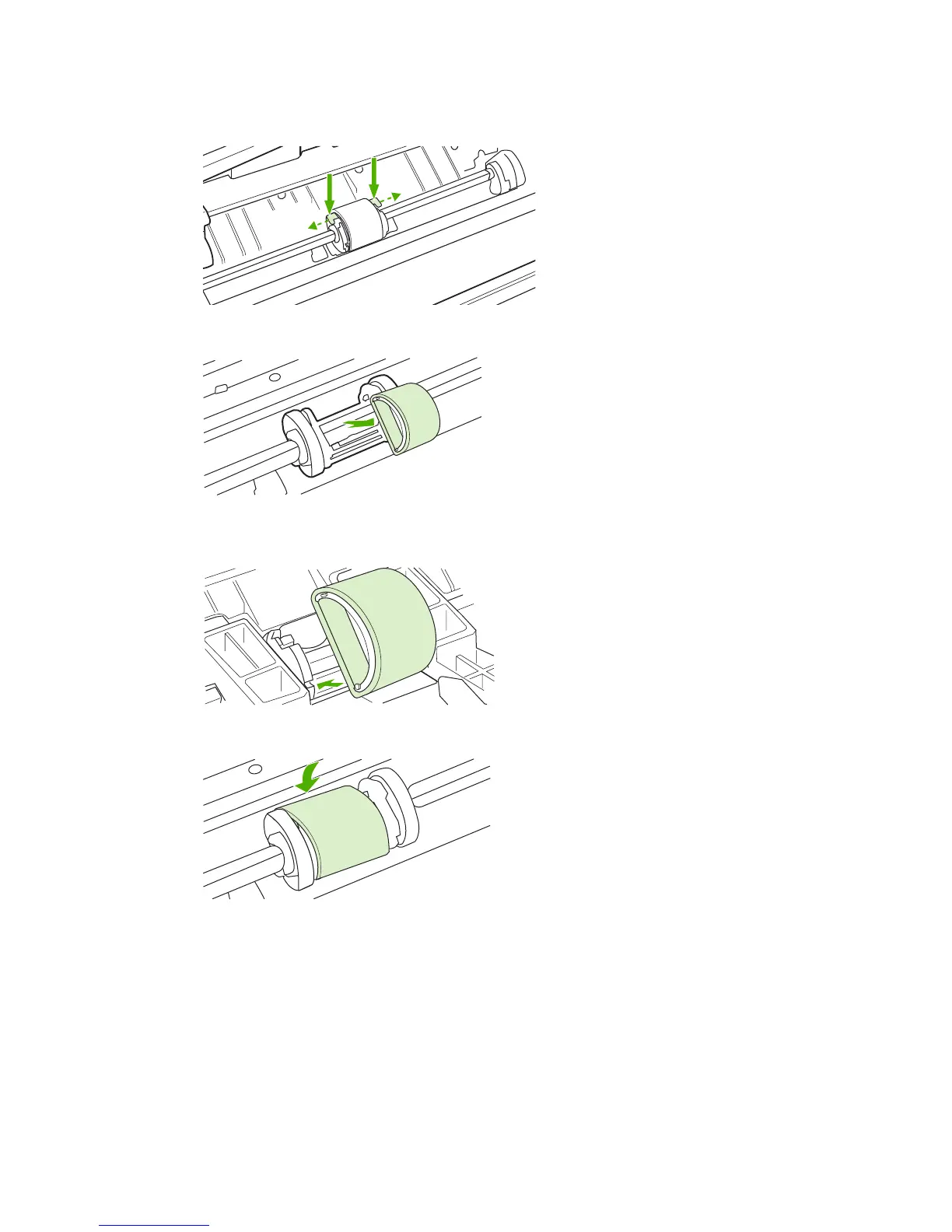5. Position the new pickup roller in the slot. The circular and rectangular slots on each side prevents