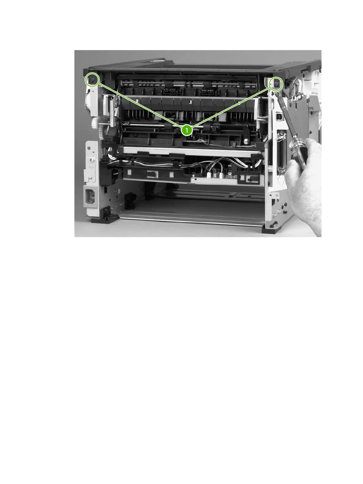 2. Remove two screws (1) at the back of the printer.