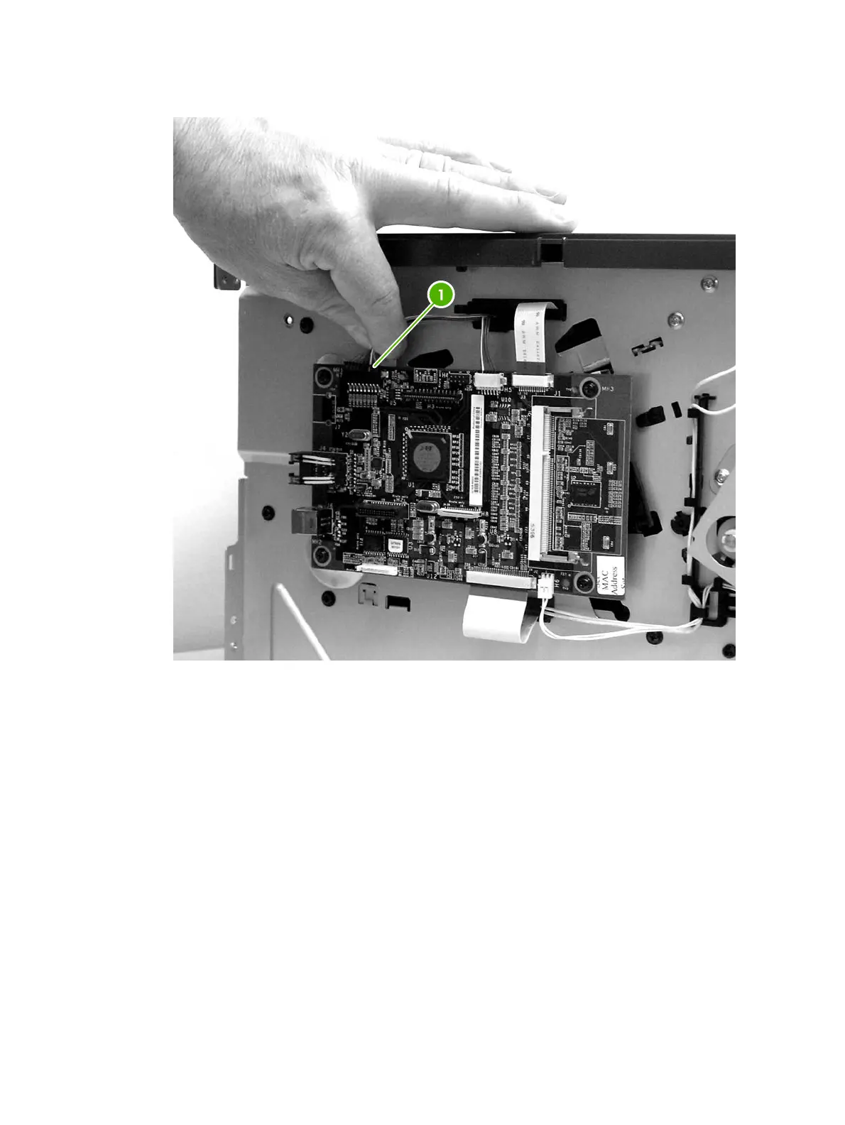 4. Release the control-panel cable (1) on the left side of the printer.