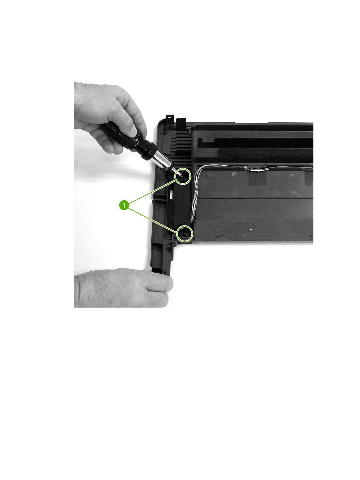 2. On the bottom of the top cover, remove two screws (1).