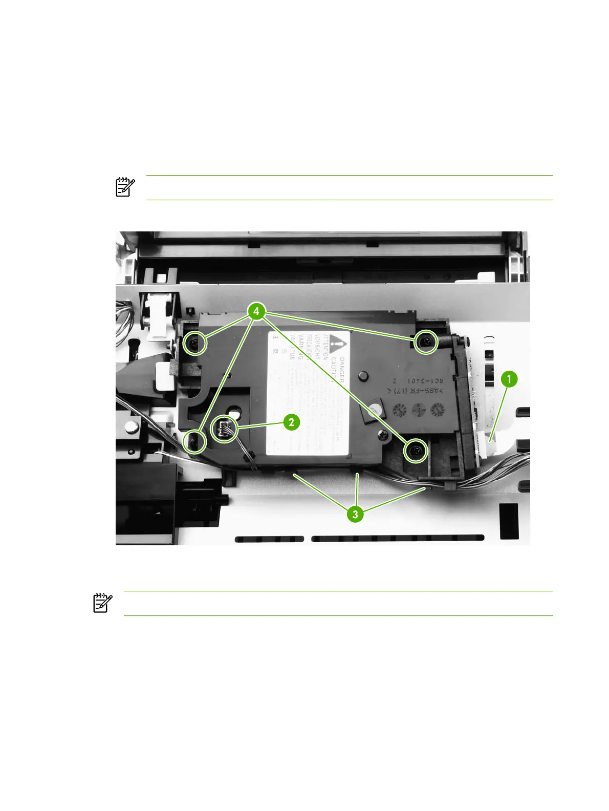 NOTE Examine the shutter switch as you lift the laser/scanner out of the printer.