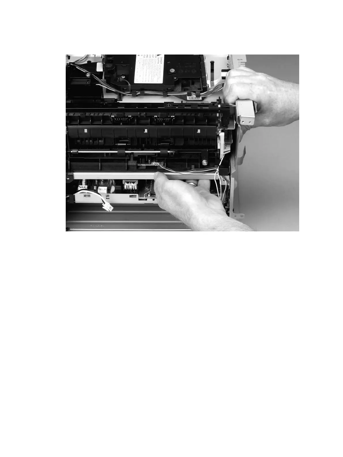 15. At the left side of the printer, pull the printer chassis from the top to spread the printer frame and