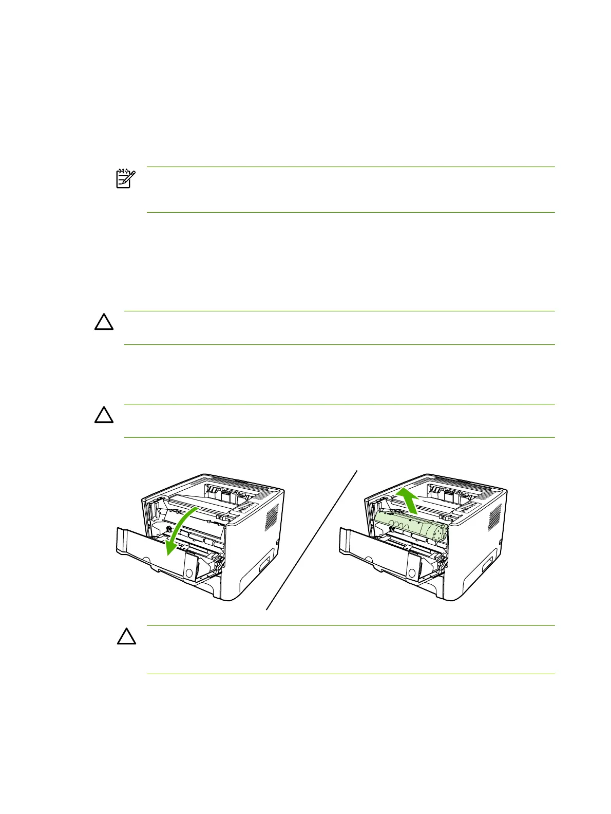 CAUTION Media jams might result in loose toner on the page. If you get any toner on your
