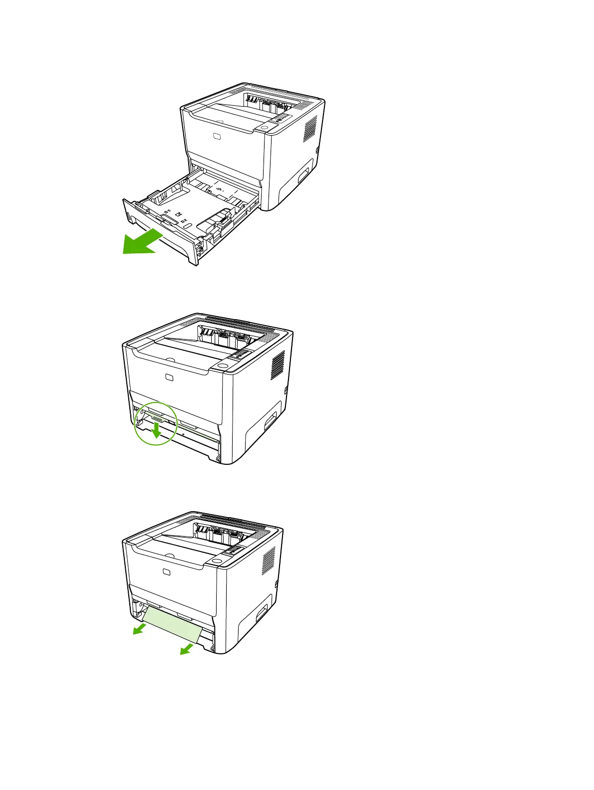 4. Push down on the green lever on the automatic two-sided printing path door on the front of the