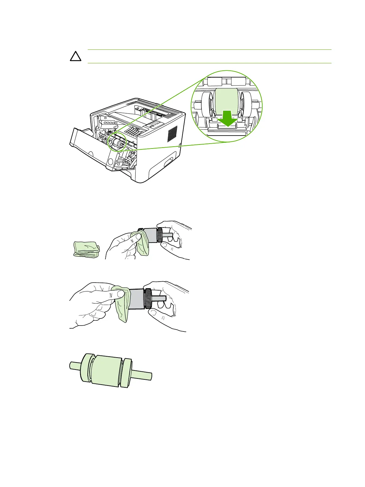 8. Using a dry, lint-free cloth, wipe the pickup roller to remove loosened dirt.