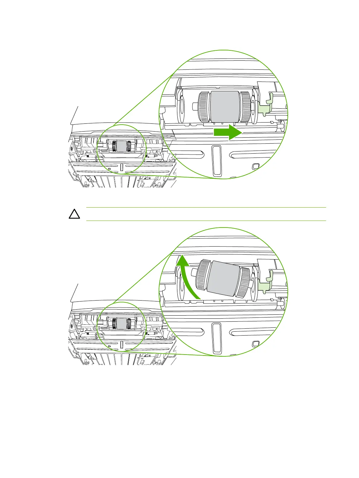8. Slide the pickup roller assembly to the right, and remove the left end cap.