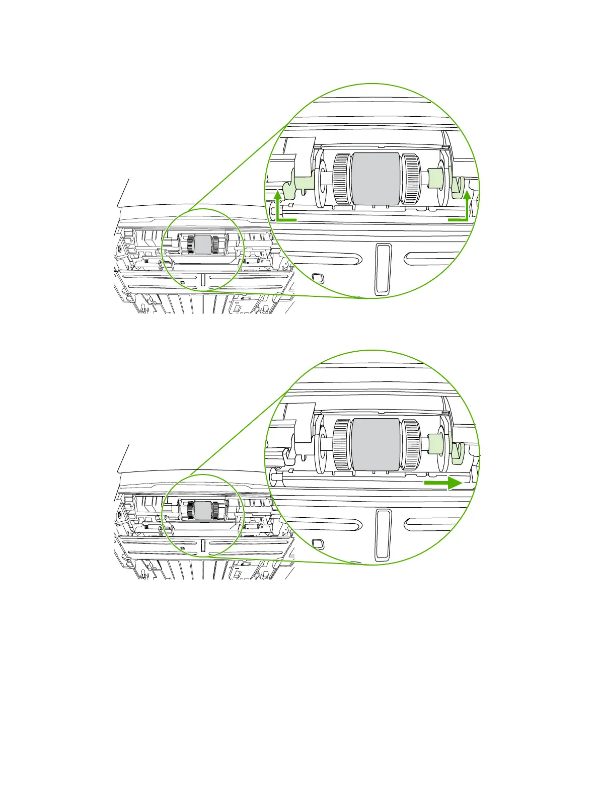 6. Pull the white tabs outward, and rotate the tabs up.