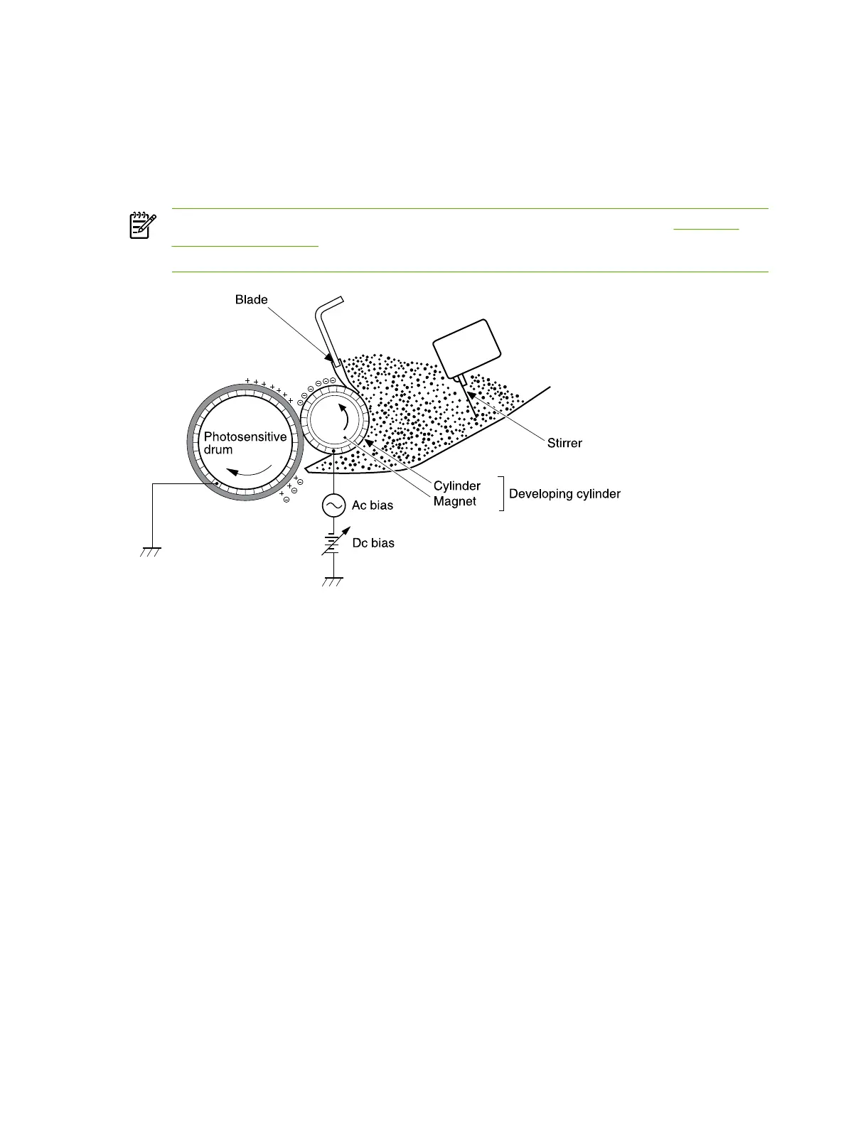 NOTE The charges on the exposed area of the drum are shown as positive in Figure 5-9