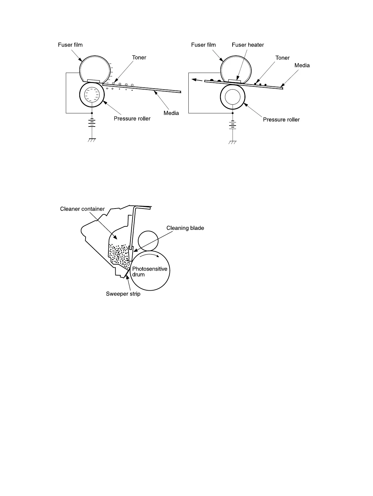 The cleaning blade scrapes the residual toner off the photosensitive drum and deposits it into the