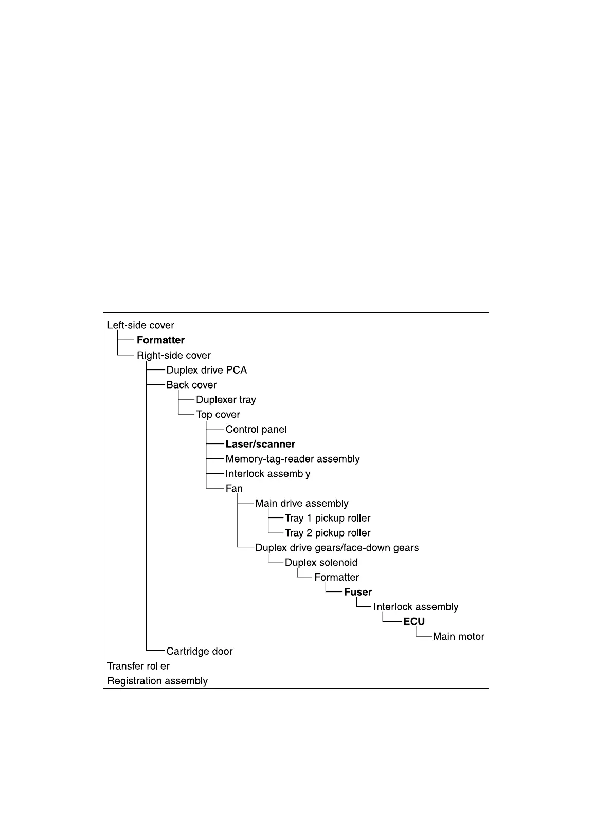 Use the following diagram to determine which parts must be removed before removing other parts.