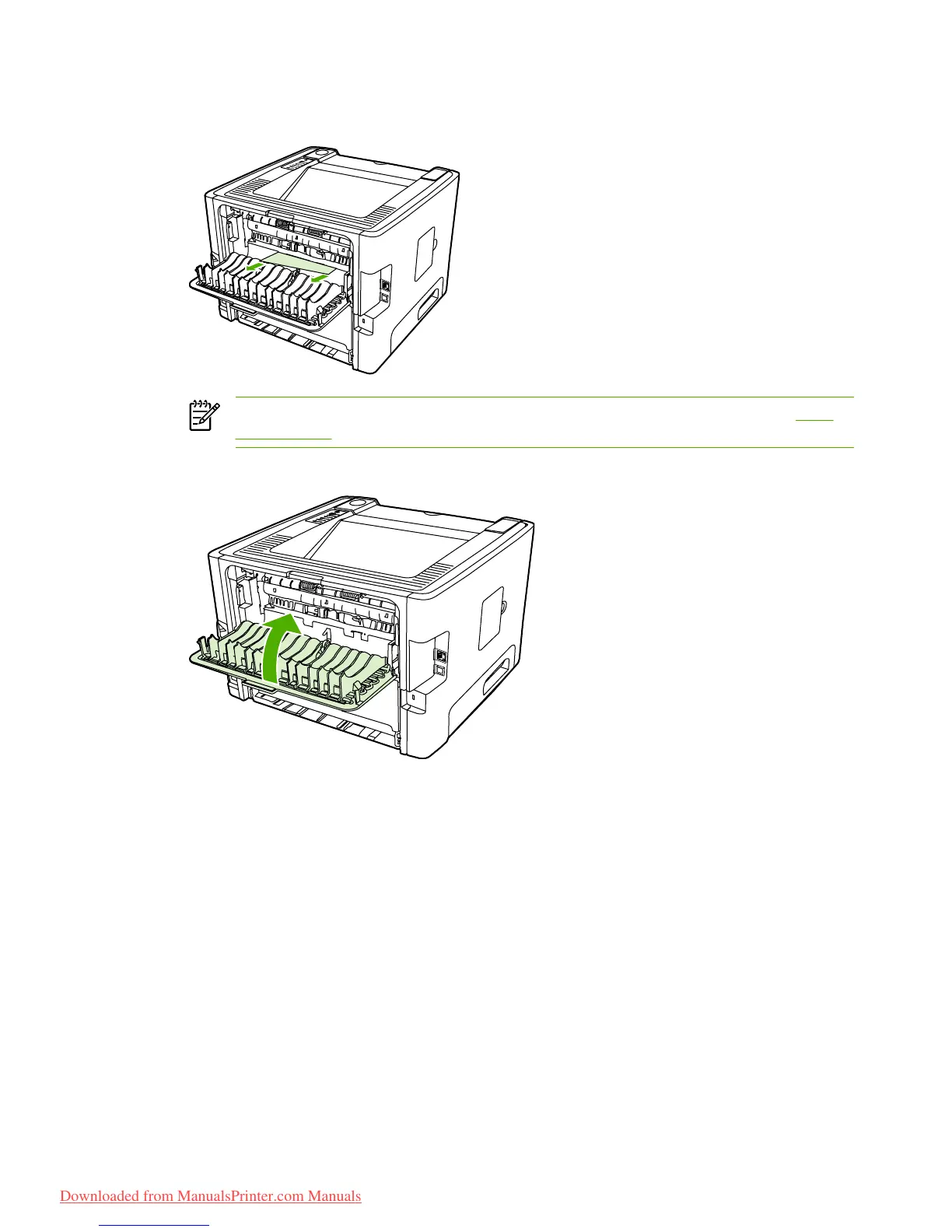 To clear a jam in the automatic two-sided printing path, perform the following steps: