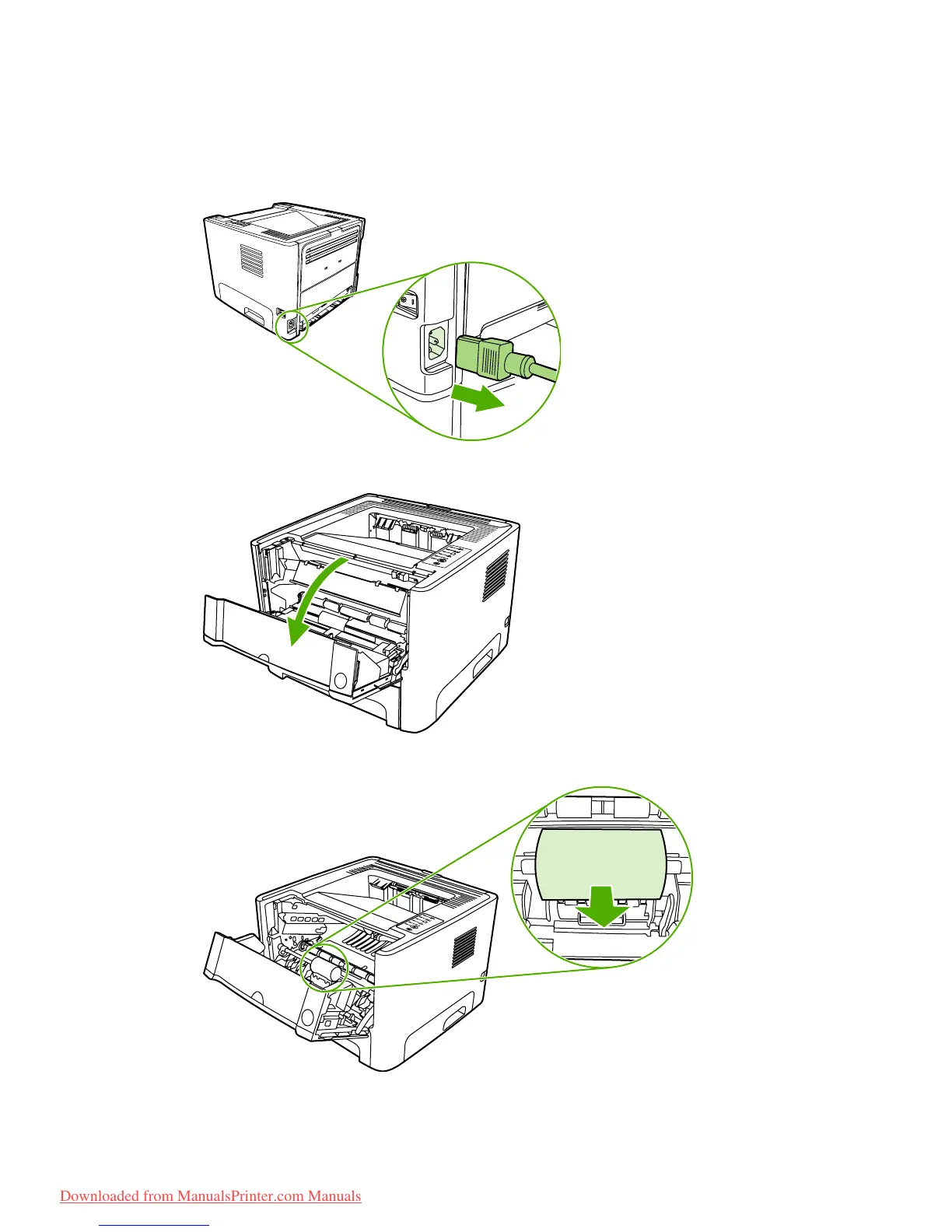 1. Unplug the power cord from the printer, and allow the printer to cool.