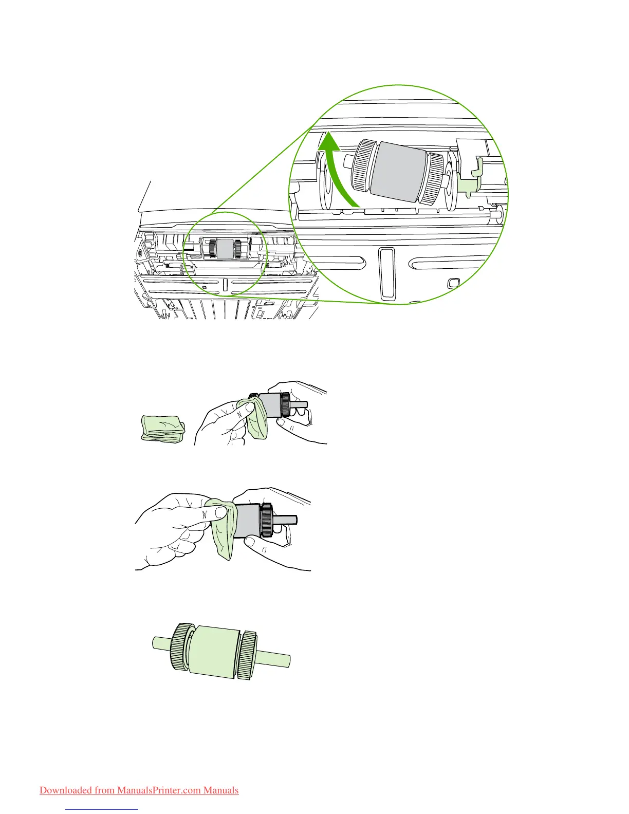 11. Using a dry, lint-free cloth, wipe the pickup roller to remove loosened dirt.