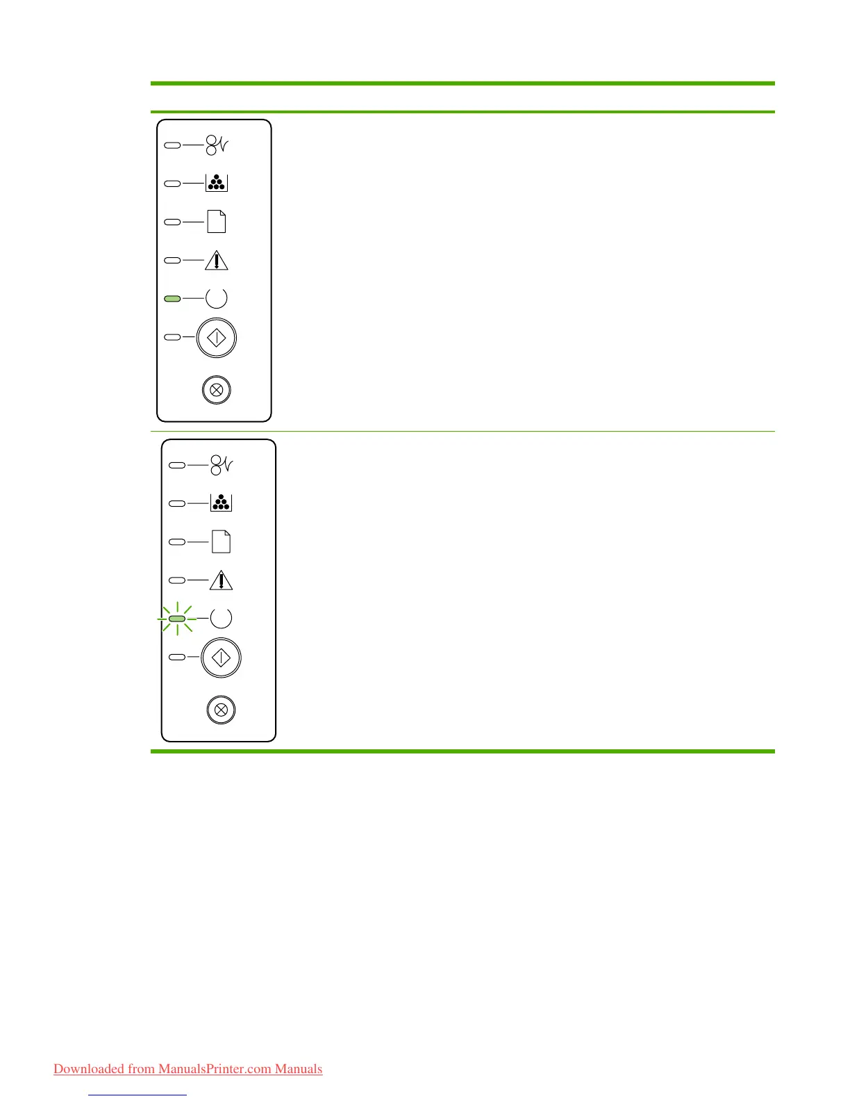 Light status State of the printer Action