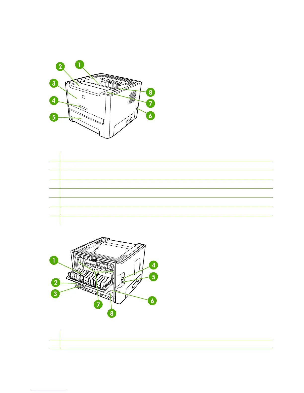 На нижеприведенных рисунках обозначены компоненты принтеров серии HP LaserJet P2015.